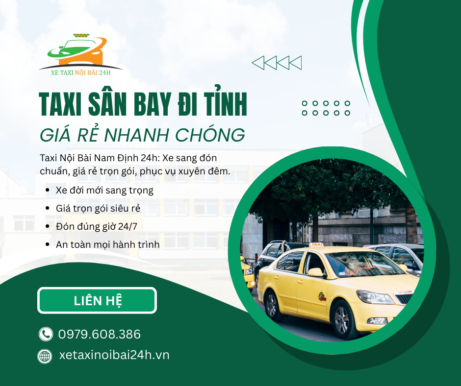 Dịch vụ taxi Nội Bài Nam Định 24h luôn sẵn sàng phục vụ xuyên đêm với cam kết xe sang, giá rẻ và đón khách đúng giờ.